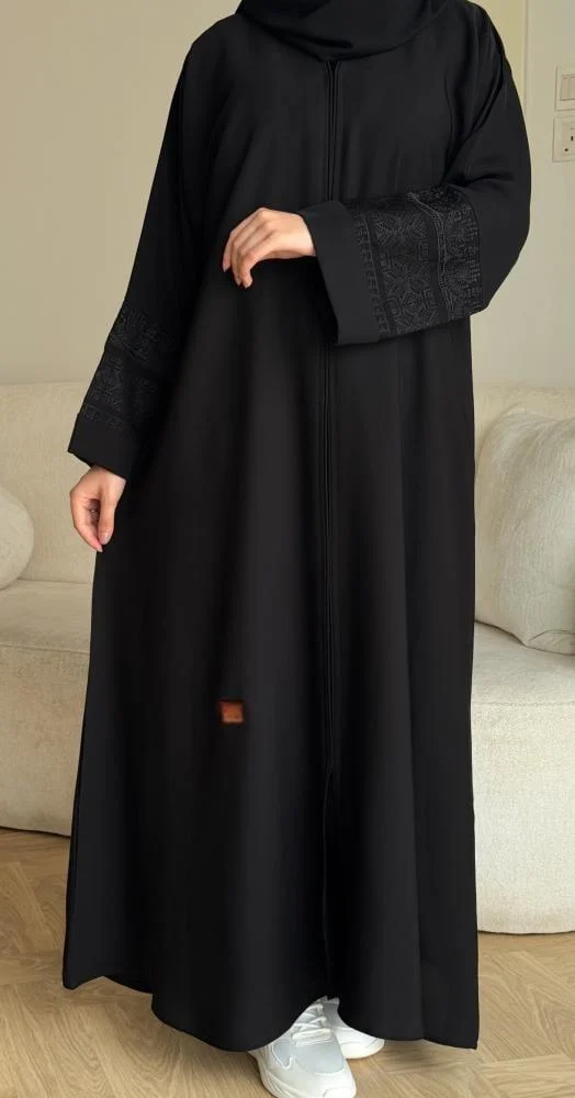 - تطريز أنيق بالخيط على الأكمام يمنح العباية لمسة فخمة وأنوثة راقية تبرز التفاصيل بعناية.